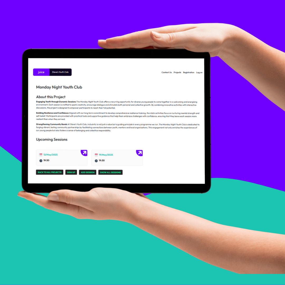 "I have been very impressed with the Juice system that we are now using. I find it a very easy system to use and a great way of logging attendance and data on our members in a safe and secure way. Juice gives us many options when it comes to planning and evaluating sessions and then producing various reports, this linked to the funding application and it's AI help in creating activities and applications makes those tasks so easy."